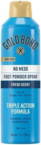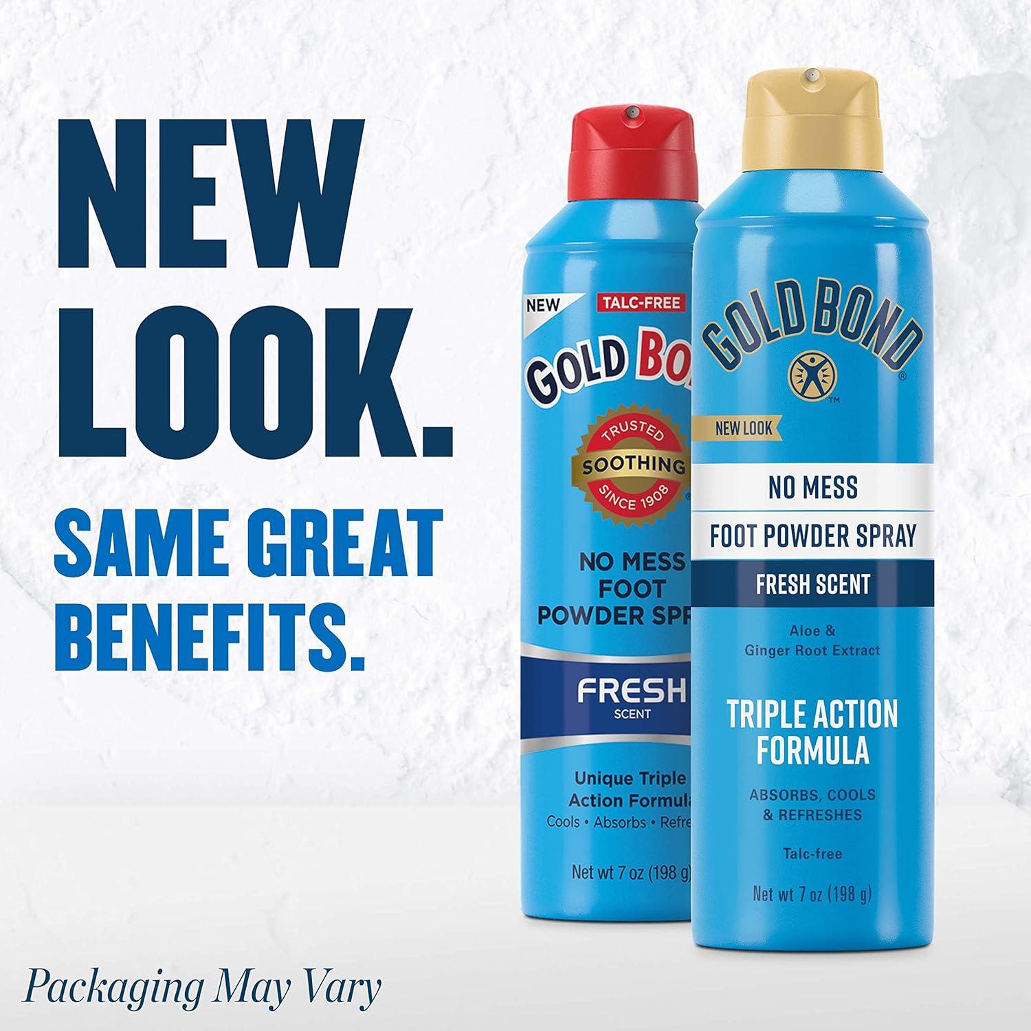 Gold Bond No Mess Talc-Free Foot Powder Spray, 7 oz., Fresh Scent, With a Triple Action Formula