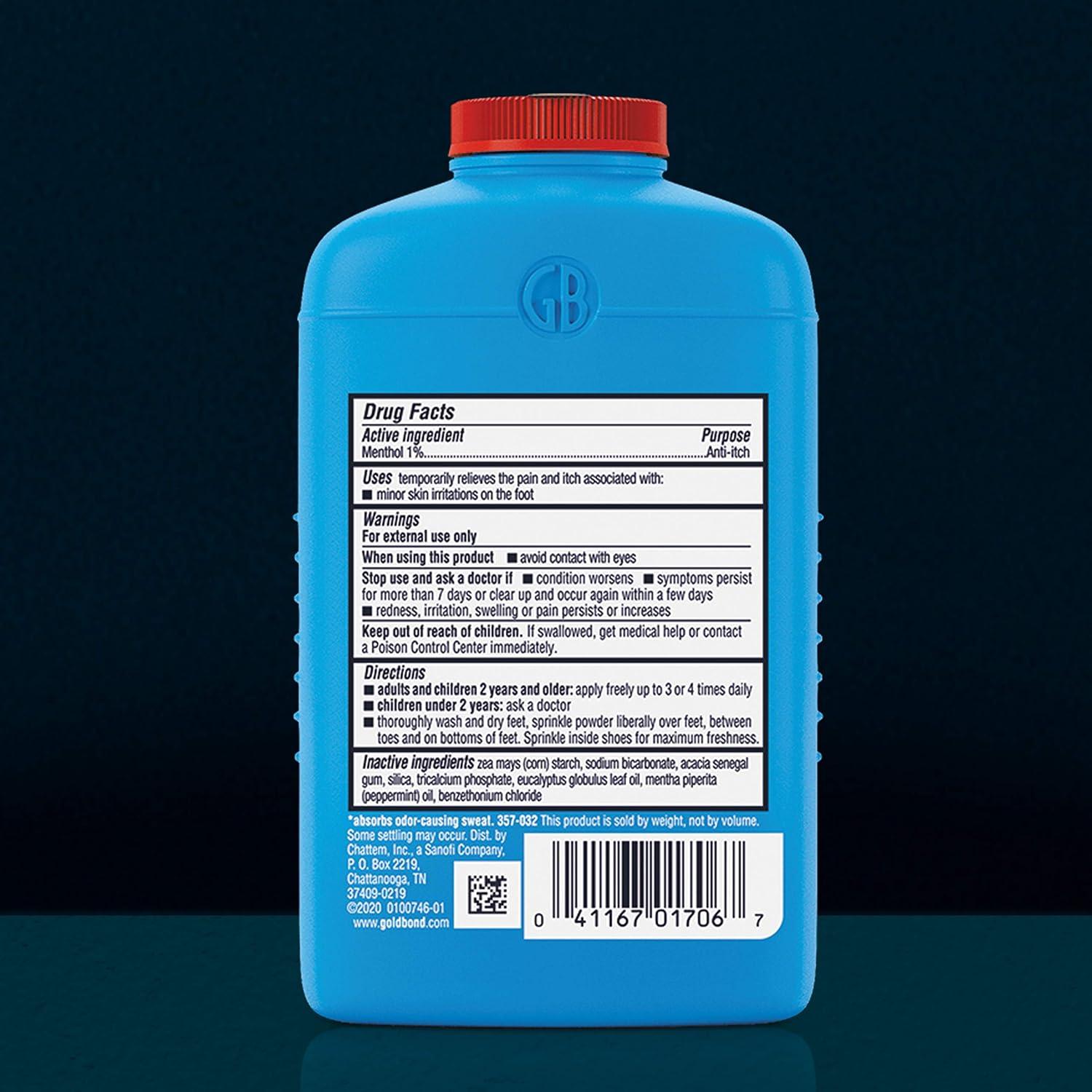 Get soothing relief for itchy feet with the unique triple action formula in Gold Bond Medicated Talc Free Foot Powder. Now talc free and formulated without parabens and preservatives, this maximum strength medicated powder absorbs moisture, relieves itch, and provides a cooling sensation to help keep feet feeling dry and comfortable. This foot powder also helps control foot odor to help keep feet smelling fresh. Best of all, this maximum strength, odor controlling and itch relieving powder is gentle enough to for daily use when used as directed. Use Gold Bond Medicated Foot Powder after showering, before exercising or anytime you're putting on shoes. Absorbs odor causing sweat.